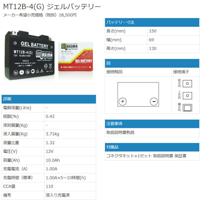 | 商品 | ジェルバッテリー |