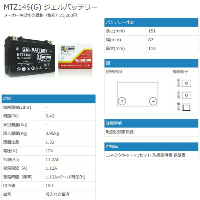 | 商品 | ジェルバッテリー |